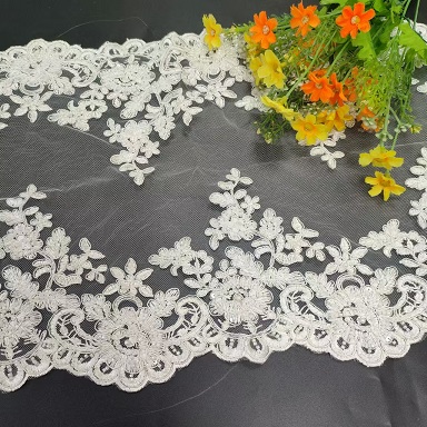 ब्रिडाल ल्याजर सीमा किनार विवाह ल्यास ट्राइम एक प्रकारको होल हो जुन अक्सर विवाहको पोशाक र अन्य दुब्लिक फेशन आईटमहरू सिर्जना गर्न प्रयोग गरिन्छ। यो LAEE सामान्यतया नायलन, रेन र पोलिस्टर जस्ता नाजुक सामग्रीबाट बनेको हुन्छ र जटिल डिजाइनहरू जस्ता फलहरू वा पामिने ढाँचाहरू। ब्राइडलले सीमावर्ती किनार विवाह ल्याले ट्रिम अक्सर गोप्यता, आस्तीन, र विवाहको पोशाकहरूको भ्रामक र ग्रेलिसको स्पर्श थप्न प्रयोग गरिन्छ। यो पनि ब्राइडल भिजुर, गार्टर्सलाई, र अन्य विवाहको सामानहरू सिर्जना गर्न पनि प्रयोग गरिन्छ। ब्रिडिलले सीमावर्ती किनार विवाह ल्यास विवाह विभिन्न चौडाईमा आउँदछ, केहि शैलीहरू बेडिसिंग वा अधिक स्पार्कलहरू थप्न। यस प्रकारको लेस ट्रिम सेतो वा हस्तिहाड शेडहरूमा उपलब्ध छ, प्राय: विवाहको पोशाक र colors हरूसँग मिल्दोजुल्दो छ। यसको नाजुक र रोमान्टिक डिजाइन र उच्च-गुणवत्ता सामग्रीहरू, ब्रिडिलले सीमाग्रस्त र फेसन डिजाइनरहरूको लागि लोकप्रिय विकल्प हो जुन एक निश्चित र फेसन डिजाइनर सिर्जना गर्न खोज्दै।