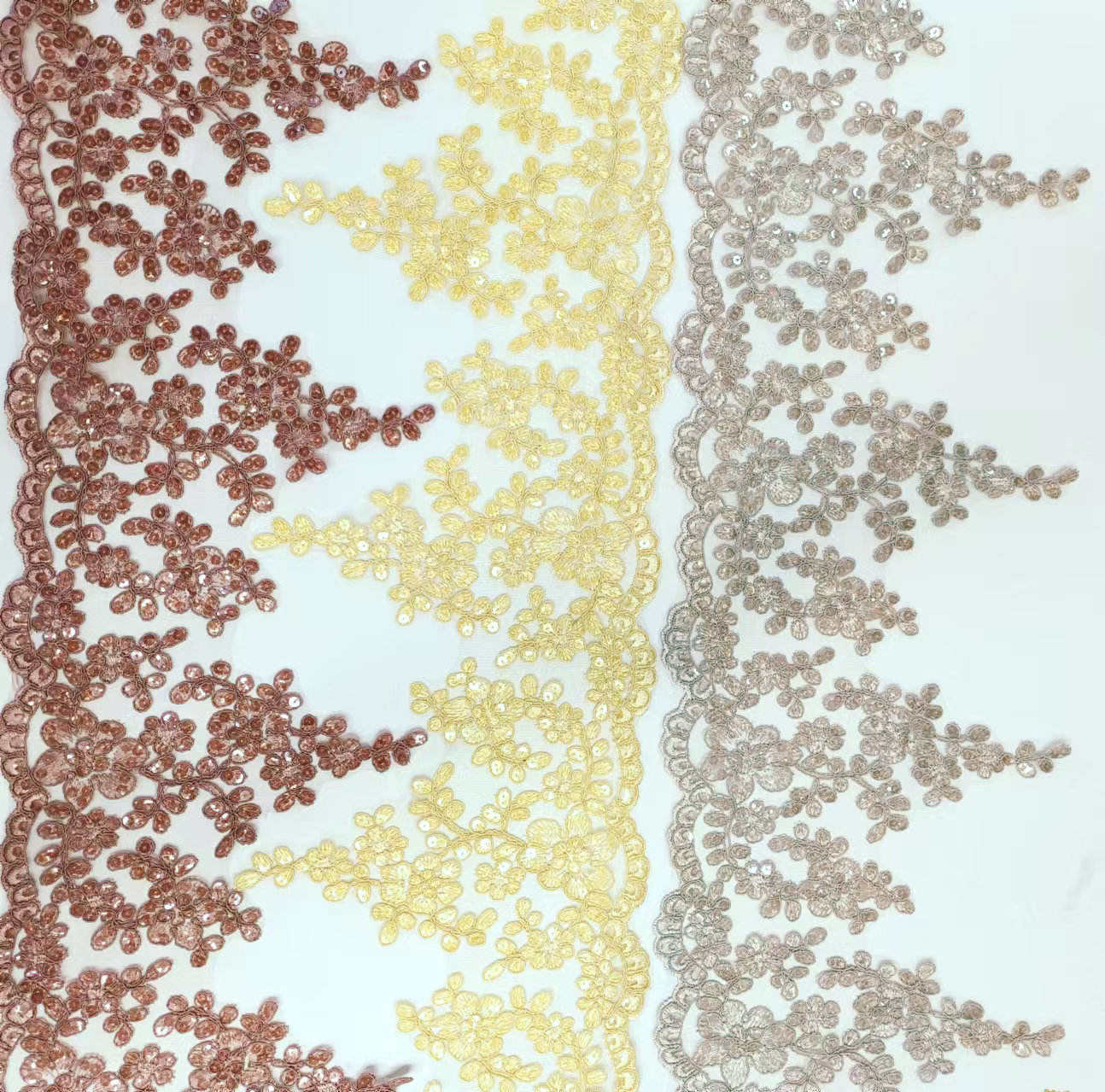 लक्जरी ब्रिडल फ्रान्सेली फ्रान्सेली वेश्याल पोशाक बोर्डर बोर्डर बोर्डर लेगले एक उच्च-छेउमा फ्रेन्च फ्रान्सिंग लेस बेस, बान्कीहरू उत्कृष्ट र चिकन बनाउँदछन्। उच्च-थैना सजावटहरू विशेष रूपमा विवाह पोशाक र बेलुकाको गाउँका लागि डिजाइन गरिएको हस्तिहाड सेतो, चम्पुन सुन र अन्य टोनहरू, एक विलासी र रोमान्टिक शैली हाइलाइट गर्दै