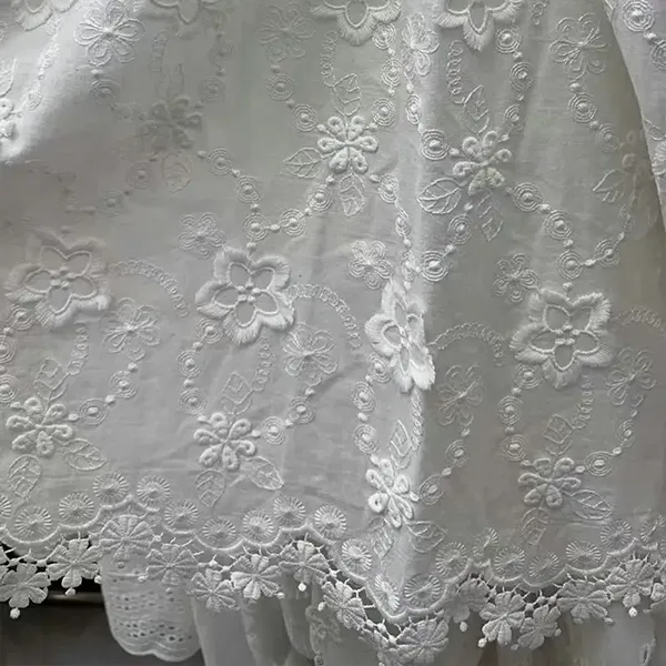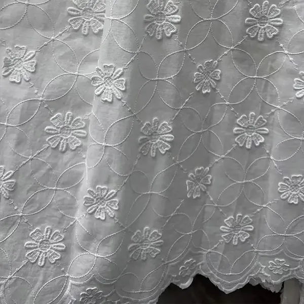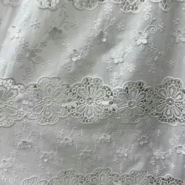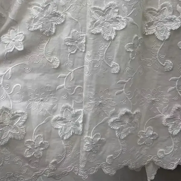 थ्रीडी फ्लोले 100% कपास कढ़ाईल लीज फेब्रिक कपडा कपडाको साथ shd डीले फ्लोर कवौती र नाजुक प्यारावर्कको लागि विशेषागत रूपमा बनाउँदछ। सफ्टता र ड्रेपिंगको क्रममा आयामी डिजाइनहरू विलासी बनावट सिर्जना गर्दछ। रोमान्टिक, भिन्टेज-प्रेरित फेसनको लागि उत्तम।