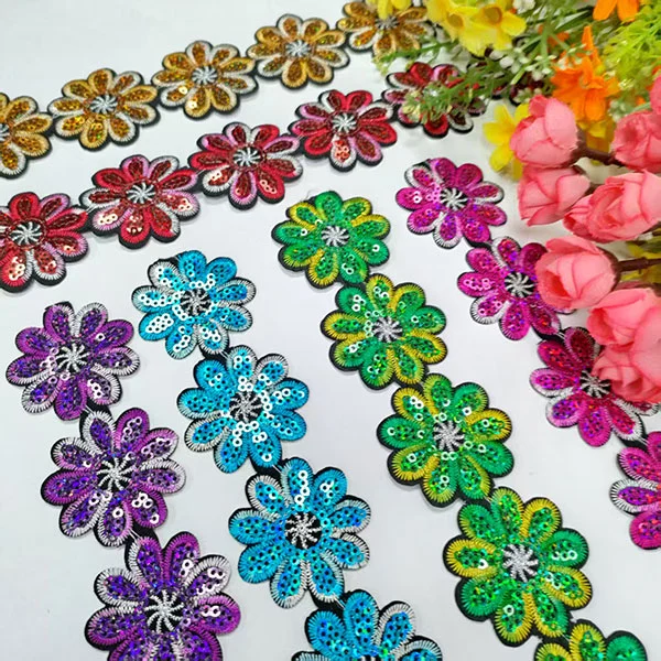 Sequins कपडा एक्जिजरीहरूले ल्यास ग्लोड ट्रिमलाई हटाउँछ र ट्रिमलको स्पर्श गर्दछ र ट्रिमिंगमा चम्किन्छ, यसलाई वस्त्र वा सामानको कपडा वा सामानहरू थप्नका लागि आदर्श बनाउँदछन्। LECE कम्पोनेन्टले एक नाजुक र फेमिनाली स्पर्श थप गर्दछ, जबकि पछाडि गोंदले विभिन्न सतहहरूमा सजिलो अनुप्रयोगको लागि अनुमति दिन्छ।