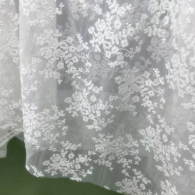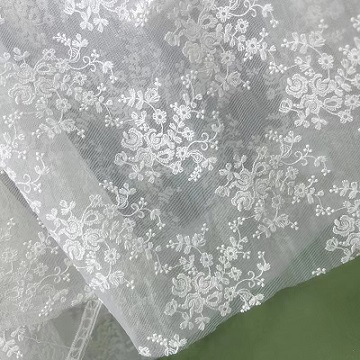 टुल कढ़ाई कपडा स्विस भोइल लेस कपडा एक प्रकारको लेस कपडा हो जुन पलिएस्टर, कपास वा रेशम जस्ता सामग्रीको मिश्रणबाट बनाइन्छ। यसले सरासर टुल पृष्ठभूमिमा जटिल र नाजुक कढाई सुविधा दिन्छ। स्विस भोइल लेस कपडा यसको हल्का तौल र हावायुक्त गुणहरू द्वारा विशेषता हो, राम्रो जाल संरचनाको साथ जसले यसलाई सुन्दर ड्रेप दिन्छ। नाजुक र विस्तृत कढाईले कपडामा सुन्दरता र विलासिताको स्पर्श थप्छ, जबकि सरासर पृष्ठभूमिले एक अद्वितीय र रोमान्टिक प्रभाव सिर्जना गर्दछ। टुल कढ़ाई कपडा स्विस भोइल लेस कपडा विभिन्न रंग र चौडाइहरूमा आउँछ, यसलाई विभिन्न डिजाइन अनुप्रयोगहरूको लागि बहुमुखी विकल्प बनाउँछ। यसको उत्कृष्ट कढाई र नाजुक संरचनाको साथ, टुल कढ़ाई कपडा स्विस भोइल लेस कपडा कुनै पनि परियोजनाको लागि एक कालातीत र परिष्कृत विकल्प हो।